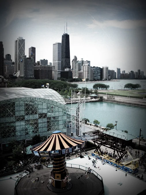 Remember that Nikon point and shoot that I took the eye portraits with? Well, this was shot with the same little camera. I took this image from the top of the ferris wheel in Navy Pier during my first week in Chicago. The Vignette and color cast were applied in post production.